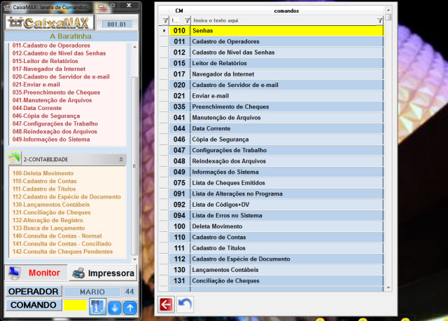 As operações são facilmente localizadas podendo usar o F1 para encontrar todos os comandos, usar filtro ou simplesmente digitar o número do comando, quando conhecido, agilizando os procedimentos.