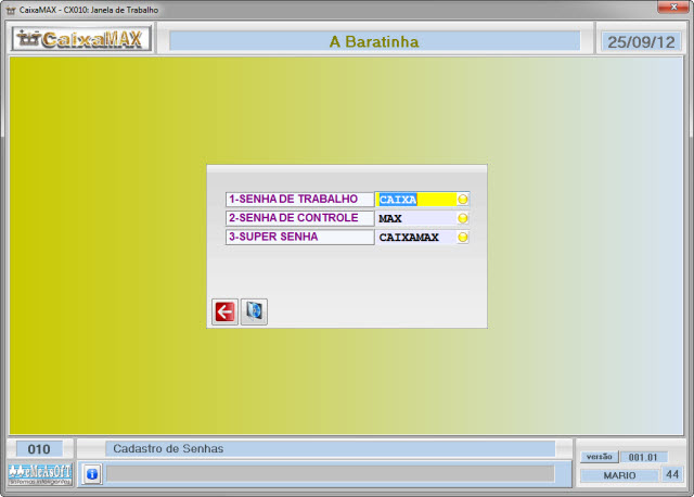 Podem ser cadastrados 3 níveis de senhas. Assim, para determinados funcionários, de acordo com a hierarquia, você poderá fornecer-lhes as senhas para executar algumas operações, mantendo as demais sob seu controle.