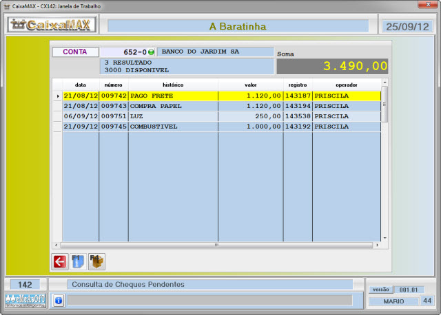 Os cheques ainda não conciliados poderão ser consultados separadamente, apresentando o total dos mesmos.
