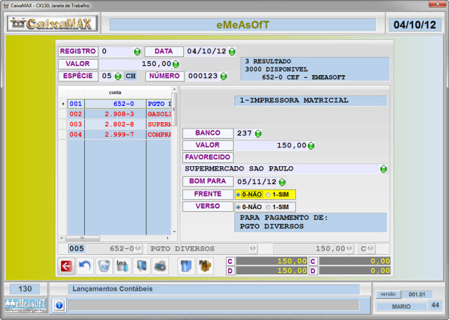 O programa CaixaMAX® foi desenvolvido para controlar o movimento financeiro e bancário de